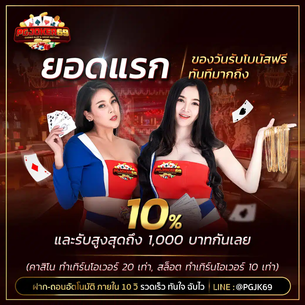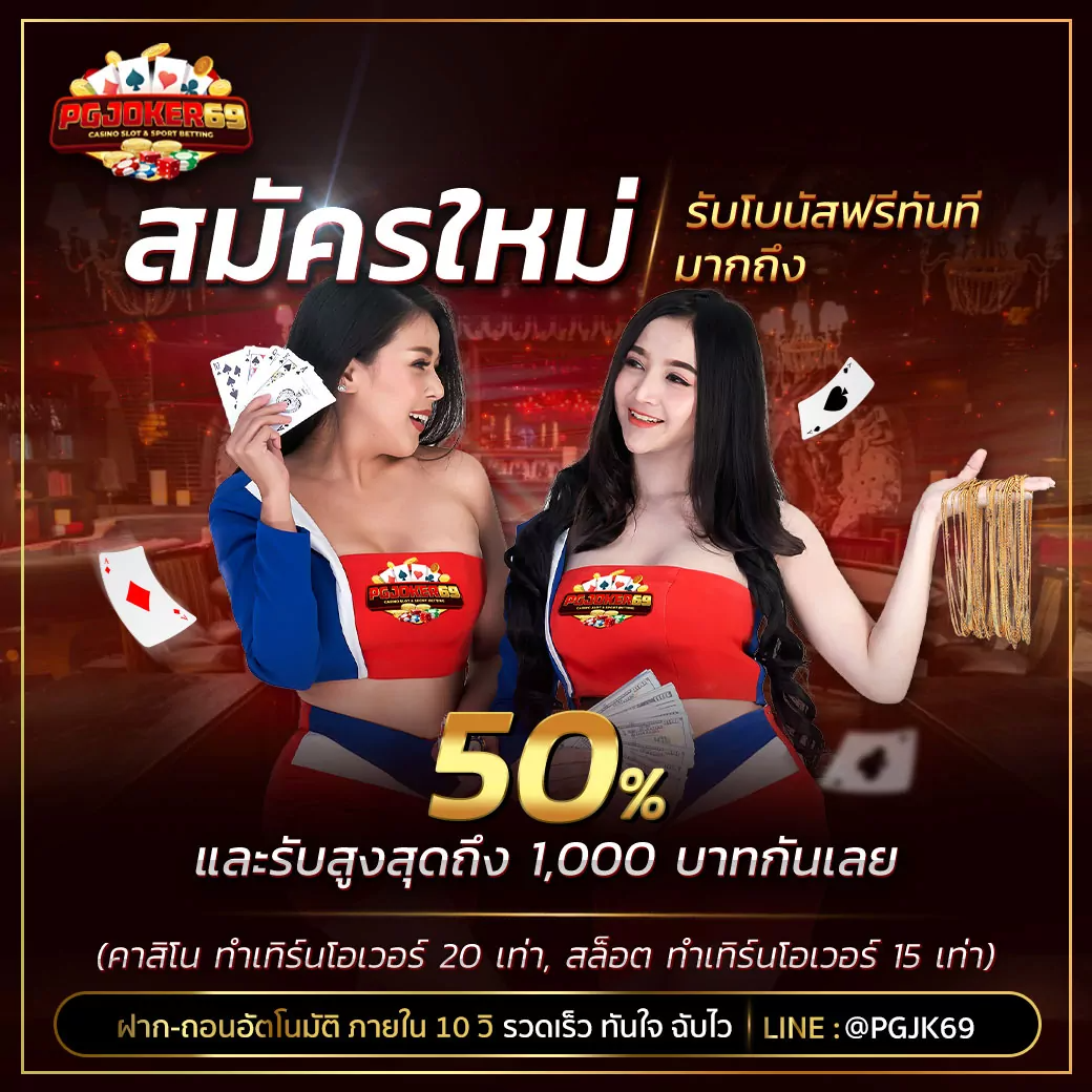 ถ้าคุณกำลังมองหาเว็บพนันที่มอบความคุ้มค่าและโอกาสในการทำกำไร PGJOKER69 คือคำตอบที่ใช่ ด้วยโปรโมชั่นโบนัส 100% ที่จะช่วยเพิ่มโอกาสในการชนะและสร้างความสนุกในการเดิมพันให้มากยิ่งขึ้น อย่ารอช้า มาร่วมสนุกและรับโบนัสสุดคุ้มนี้ได้แล้ววันนี้ที่ PGJOKER69